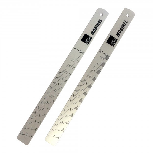 Мірні лінійки дозволяють зручно і точно дотримуватися пропорції при змішуванні різних компонентів лакофарбових матеріалів. Лінійка для об'ємного змішування Mobihel виконана із сплаву алюмінію зі спеціальним покриттям, що не боїться розчинника і виробляє вимірювання для пропорцій 3:1 4:1 на різні обсяги.